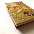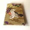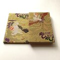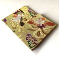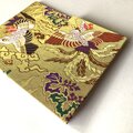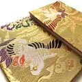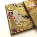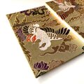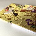 素材は「桐生金襴織物」(化繊)です。比較的丈夫で色褪せし難い為、美しい絵柄を末永くお楽しみ頂けます。織物(繊維)は摩擦や引っかけに繊細な素材です。御朱印帳袋等を使用して御朱印帳を保護して頂き、本作品をより美しい状態で保って頂く事をおすすめ致します。