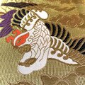 本作では、織地に高彩度の金糸・銀糸が配され、鳳凰の神聖性と神話的な荘厳さが際立ちます。金糸は太陽や天のエネルギー、銀糸は月や静寂を象徴し、全体として陰陽の調和を意識した色彩設計です。