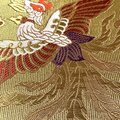 鳳凰は、古来より平和・繁栄・再生を象徴する瑞鳥として尊ばれてきました。その姿を織り上げた本作には、気高くしなやかな気配が漂います。金糸の輝きは光の角度によって多様な表情を見せ、絵画のような存在感を放っております。