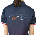 中央のイラスト部分を、手描き(9割作業)+画像調整ソフト(1割作業)でお宅のご家族であるワンちゃんをイラストにしてポロシャツにプリントいたします。