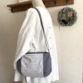 ラウンドショルダーバッグ*刺繍ショルダーバッグ/グレイッシュブルー