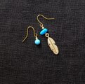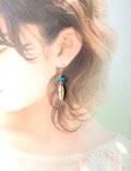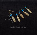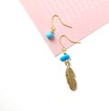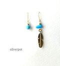 G21【ターコイズと羽】ゴールドカラーのピアス アシンメトリーで(パーツ変更可能)
