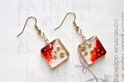 レジンアート スクエアピアス〈夕日の落とし子〉