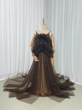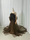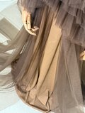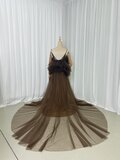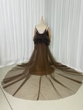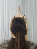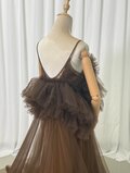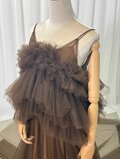 人気上昇!パーティードレス ブラウン 2ways キャミソール 胸元フリル 妊婦 前撮り
