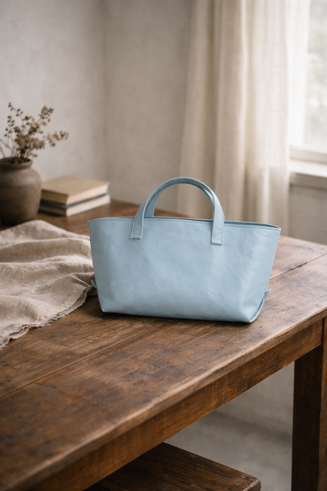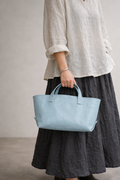 本革 レザートート スモールフィールドバッグ アッシュブルー 牛革 ミニトート ユニセックス