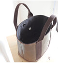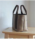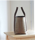 作品が到着いたしました。 優しいラテグレージュ色と細いレザーハンドルが、とても上品でフェミニンな印象の素敵なバッグですね。 季節を問わず活躍してくれる事間違いありません。ありがとうございました。
