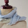 小さいけれど、首すじの日差し除けにピッタリです。藍の冴えたお色と麻の透明感が暑い夏に素敵です。素敵な作品をどうもありがとうございました。