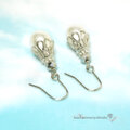 艶やかなパール加工のシェルに、メタリックシルバーのガラスが煌くピアスです。
