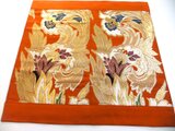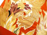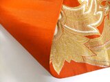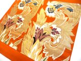 無地部分は中無地(絹)を使用しています。落ち着いたオレンジ色系地に花文様で華やかさがございます。