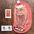 赤い帽子をかぶって、クリスマスカードに大変身!