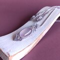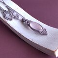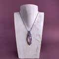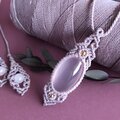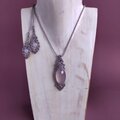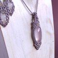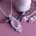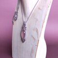淡いピンクのローズクオーツに淡いグレーのワックスコードを合わせて、マクラメ編みのネックレスを作りました。