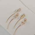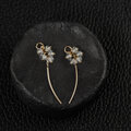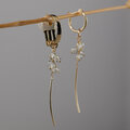 透明感あふれるホワイトトパーズのボタンカットストーンが優雅に輝き、耳元に柔らかな華やかさを添えます。シンプルでありながら上品なデザインは、日常使いはもちろん、特別なシーンにもぴったりです。