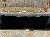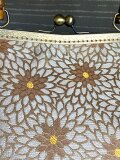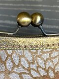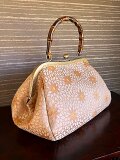 金糸、銀糸の菊模様の名古屋帯を竹の手がま口手提げにしました。