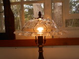 ランプ笠は、丸型のぶどう模様の透明ガラス笠です。
