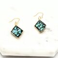 黒漆とグリーン螺鈿のダイヤのピアスイヤリング【2171】#ピアス#イヤリング
