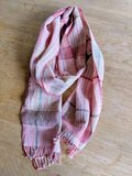 春夏向けのストールに、草木染めのピンクをメインに使ったストールを織りました。