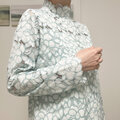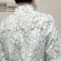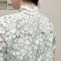 襟ぐりと袖口はレースの柄を生かすため、その柄に沿って始末をしています。