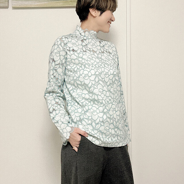 黒レースブラウスは、シックでとても素敵です。これからの季節、色々なシーンで活躍しそうです。 ボートネックTシャツも襟ぐりの型がきれいに流れて気に入りました。