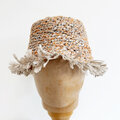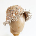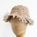 フランスの手芸店、La Droguerie(ラ・ドログリー)の麻/竹糸と麻糸で編みました。ザックリとした編み方で通気性も良く、またブリムのフリンジが風に揺れ軽やかに夏をお楽しみ頂けると思います。