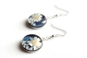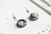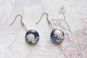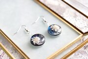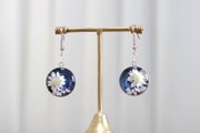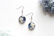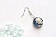 深いコバルトブルーのレジンに、白いお花をあしらった知的で愛らしいピアス。
