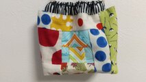色々な生地をパッチワークして、小さな巾着を作りました。