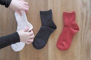 締めつけないようにするためつくりかたの都合上、履き口に糸のほつれがある場合があります。