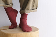 綿とリネンの混合でつくったくつしたです。リネンのみだとざらッと感が強く感じたので、より履き”心地よぐ”よりこころがゆるりと感じられるように綿を加えました。