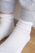 ゆるやかとはいえ、丈も長くないのでずり落ちる感じもなく、またかかとがズレないように足首部分に工夫を施しています。