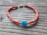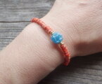 Blue Romanglass and Coral bracelet ローマングラスと珊瑚のブレスレット