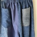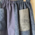 カラー藍系 切替えなどパッチワークしています楽しい。トップをシンプルにして頂いても映えます。