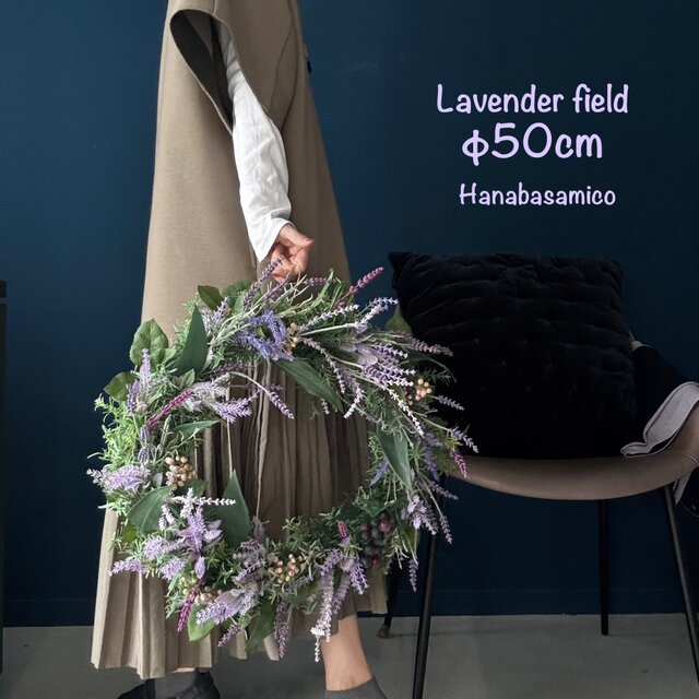 再販@母の日にも【迫力の50cm!】リラックスしたい寝室やエステサロンに!! ラベンダー畑のようなラージリース
