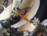 スカート後ろ側の鶴に、裏側に飛んだ地色の染め色が