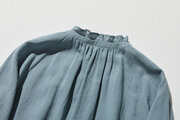 品ありフリルブラウス 長袖ブラウス コットンリネン 灰色がかった青色 250418-2