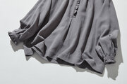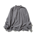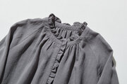 品ありフリルブラウス 長袖ブラウス コットンリネン 灰色 250418-4
