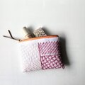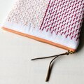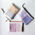 赤、紫、黄色の3パターンからお選びいただけるこのポーチは、伝統的な刺し子技法を用いており、温かみのあるデザインが特徴です。
