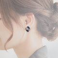 ネイビーとライトグレーのスクエアガラスのピアス/イヤリングです。