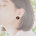 ブラックとキャメルのスクエアガラスのピアス/イヤリングです。