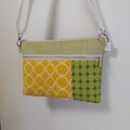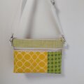 黄色や緑色系の織物生地やプリント生地を組み合わせました