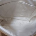 前面の生地切り替え部分にファスナーポケットをひとつとバッグ内側にポケットをひとつ付けました