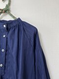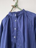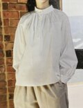 着心地のよいレースコットンでラグランギャザーブラウスを制作いたしました。ギャザーをたくさん入れた割にはスッキリと着こなせる一枚で、可愛らしさの中にもマニッシュな雰囲気が感じられます。広めのカフスと首に沿った衿はクラッシックなイメージで上品に着こなせます。
