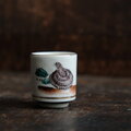 戸愚呂を巻く蛇と赤い花(巳)◆九谷焼 色絵金彩覗き猪口 昭和レトロ 干支 酒器 コレクション 古民家 古道具 b3