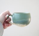 通常マグカップやお湯のみは飲み物の色もお楽しみいただけるよう、器の内側には白系の釉薬をかけることが多いのですが、今回は変則的にその色彩を逆にしてかけ分けました。