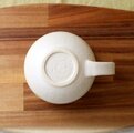 通常マグカップやお湯のみは飲み物の色もお楽しみいただけるよう、器の内側には白系の釉薬をかけることが多いのですが、今回は変則的にその色彩を逆にしてかけ分けました。
