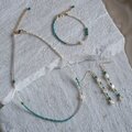 小さなキューブ状のターコイズは小さめと大き目の2種類によりニュアンス感あるデザインをお楽しみいただけます。
