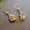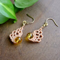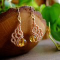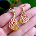 天使の羽をモチーフに、はちみつのような黄金色の艶やかで魅力的なアンバー(琥珀)丸玉を合わせたマクラメ編みピアスです。耳元で印象的にゆらゆらと揺れる天然石ピアスに仕上げました。