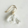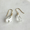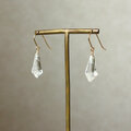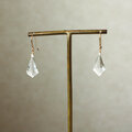 変形ダイヤカットのクリアな水晶をシンプルにピアスにしました。少し大きめの水晶には裏面にキュレットのあるファセットカットが施されています。ピアスフック、ワイヤーは14KGFを使用しています。少し大きめの石を使用していますので、サイズを5枚目の画像でご確認の上ご検討いただけましたら幸いです。