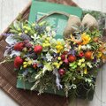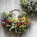 赤い木ノ実と真紅の鶏頭の花を散りばめアレンジされたリースで可愛いくセンスの良いステキなリースでした