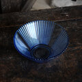 ギザギザで素敵◆プレスガラス深鉢 碗 素麺鉢 古道具 昭和レトロ ブルー ニュートロ 昭和中期 i2