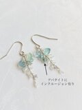 【涼やかブルーグリーン】フローライトとホワイトトパーズの房ピアス ac/553