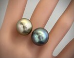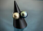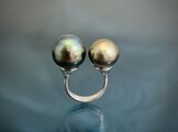 海と陸の恵み。オーシャンブルーとアイランドグリーンのコントラストが目を奪います。そして吸い込まれそうなテリと輝きは14ミリと13ミリという大きさも相まって見る者の呼吸を止めるほどインパクトを与えます。一切の装飾は無し。真珠の持つ魅力とパワーをこれほどまでに感じていただけるフォークリングはポエジ史上初でございます。とうとうこんなの作っちゃいました。